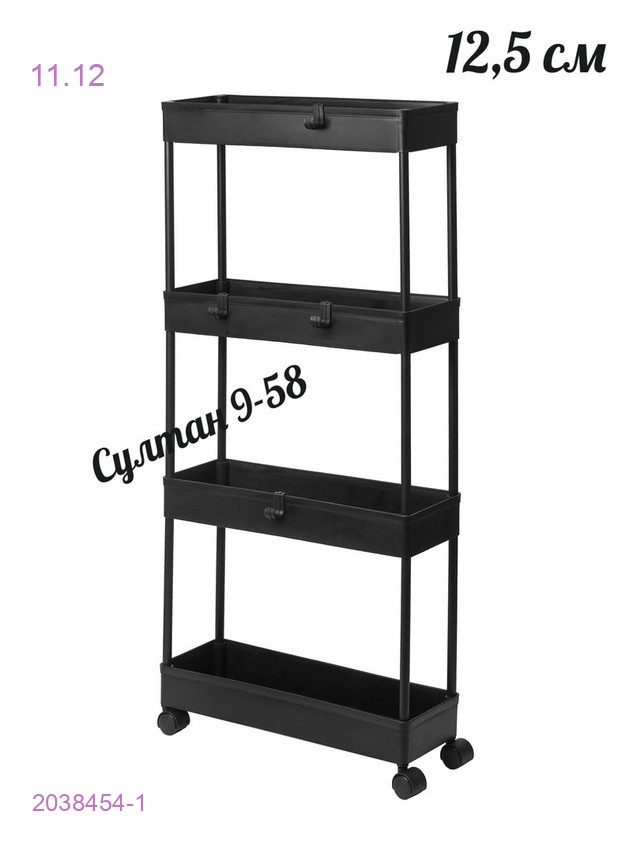 Пластиковая этажерка на колесиках 4 яруса (узкая)